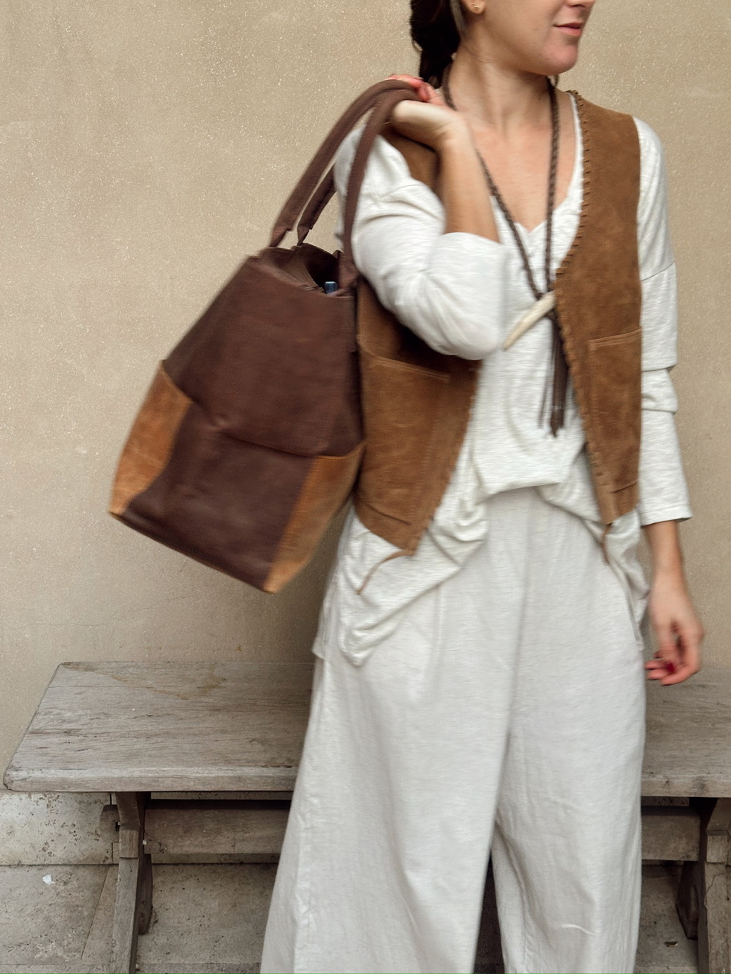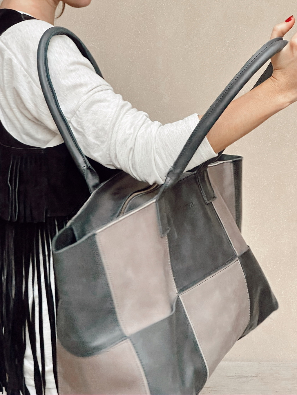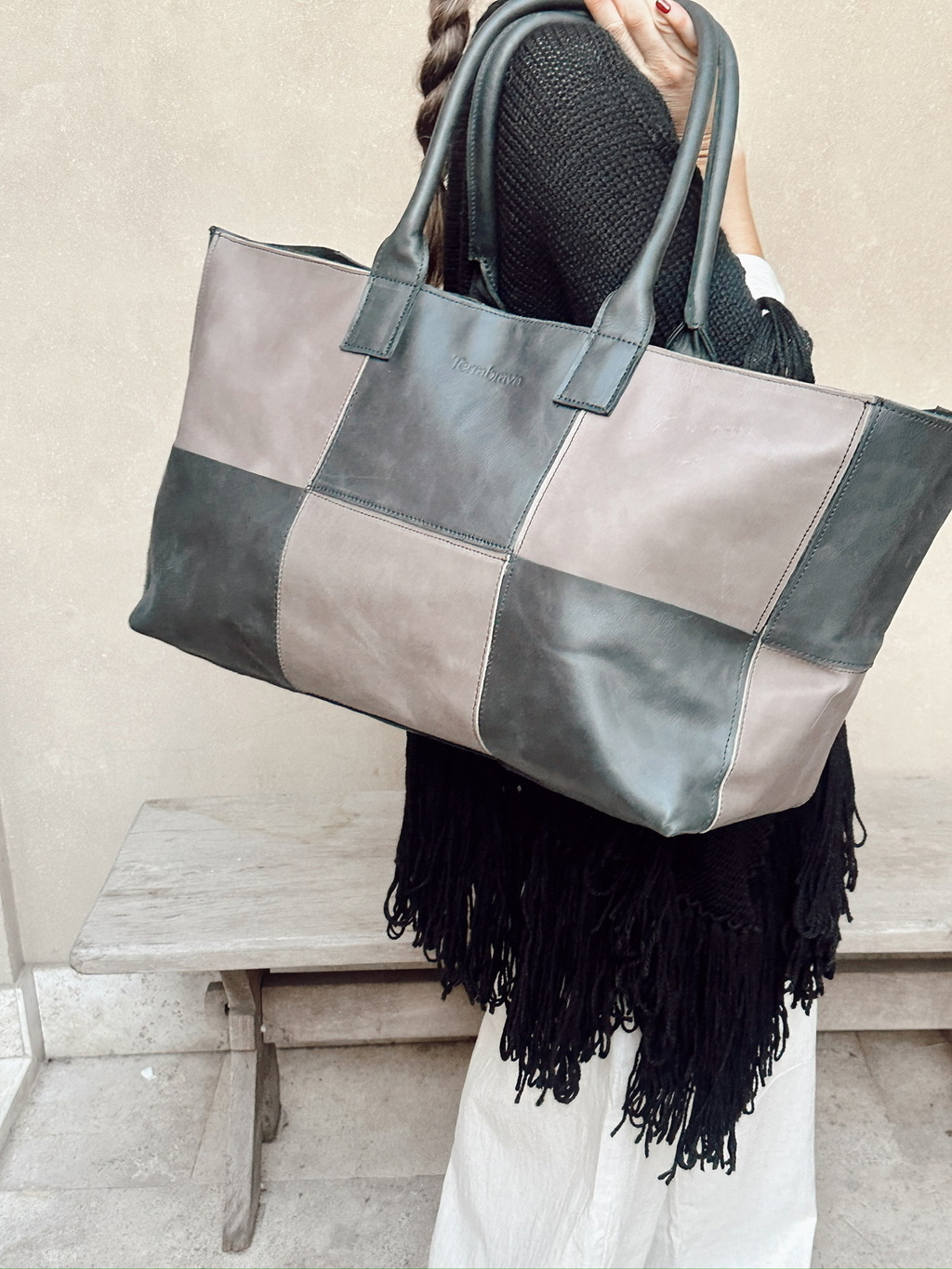 En su nombre y diseño, esta su combinación. Inspirada en la elegancia de un tablero clásico, la Tote Bag Damero utiliza un patrón presente en multiples lenguajes visuales resignificandolo en este diseño elegante, atemporal, y confeccionado de manera artesanal. Su version combinada, entrelaza distintos tonos tierra creando ritmo, profundidad y carácter.